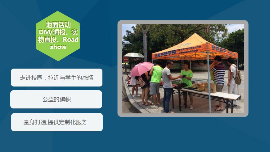 您所在的位置:主頁 > 業(yè)務(wù)范圍 > 高校傳媒 > 地面活動